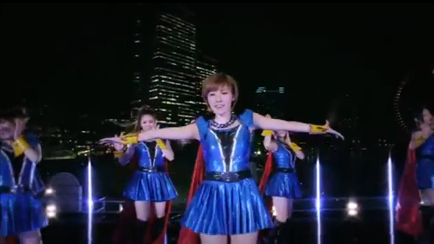 The PV is okay. It isn't exactly ground-breaking, but it's pretty good - better than Pyoko? Heck fucking yeah. It's nice to see the girls out of the bloody studio (please, MM, take this in a note! NO MORE STUDIO'S!!!) and actually out in the open. I like that they are on a freakin' roof, dancing in the night with lights surrounding them. I like that they are in a random warehouse, in super hero costumes, singing about being energetic. I like that this is different to what H!P seem to be giving us lately. Okay, so the hero costumes aren't exactly new - but this is the closest we will ever get to Berryz rangers right now.