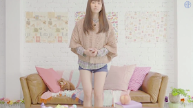 Image wise, the video is very colourful and cute, contrasting greatly from their cool and classic videos that they have released beforehand. It is, however, a pretty basic PV, and reminds me greatly of S/mileage's second indies single, Asu wa Date na no ni, Imasugu Koe ga Kikitai. It has the same structure and layout, pretty much; girls waiting in their rooms for someone they like to call them, with the only difference being that Asu wa Date had a dance shot, and that the girls of S/mileage actually had their own rooms instead of the same room that had been re-done with new curtains and a different piece of fruit on the desk or table. In fact, even the songs are similar... but we will get to that later on.